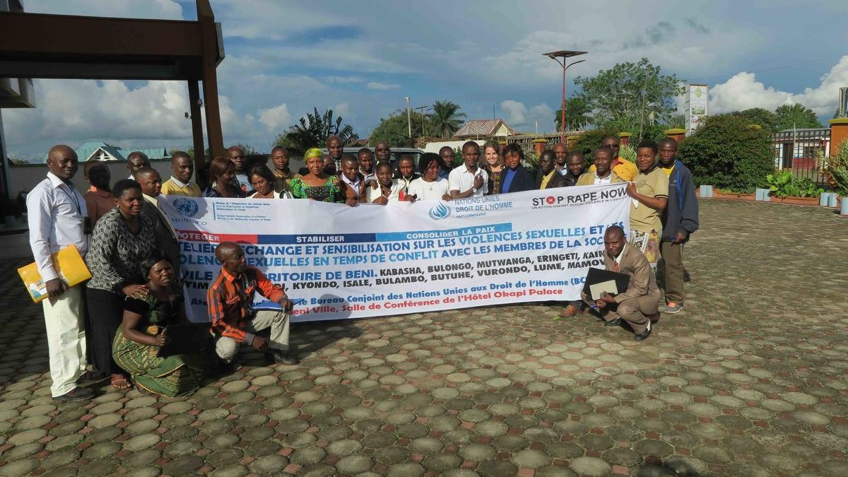 Le Bureau Conjoint des Nations Unies aux Droits de l’homme de la MONUSCO-Beni a organisé le jeudi 12 octobre 2017, un atelier d’échange sur les violences sexuelles et les violences sexuelles en temps de conflit avec les membres des organisations de la société civile du territoire de Beni, Province Nord-Kivu. C’est le deuxième atelier de ce genre en l’espace de deux mois suite une première rencontre organisée, à Beni, le mercredi 9 août dernier. Cette deuxième phase a rassemblé 28 acteurs des régions Nord, Est et Sud du Territoire de Beni qui continuent d’être lourdement affectées par les violences sexuelles et basées sur le genre et les violences sexuelles liées au conflit. La première sensibilisation avait, elle, ciblé 65 acteurs en provenance des zones de Mangina (Ouest) et Oicha (Nord).