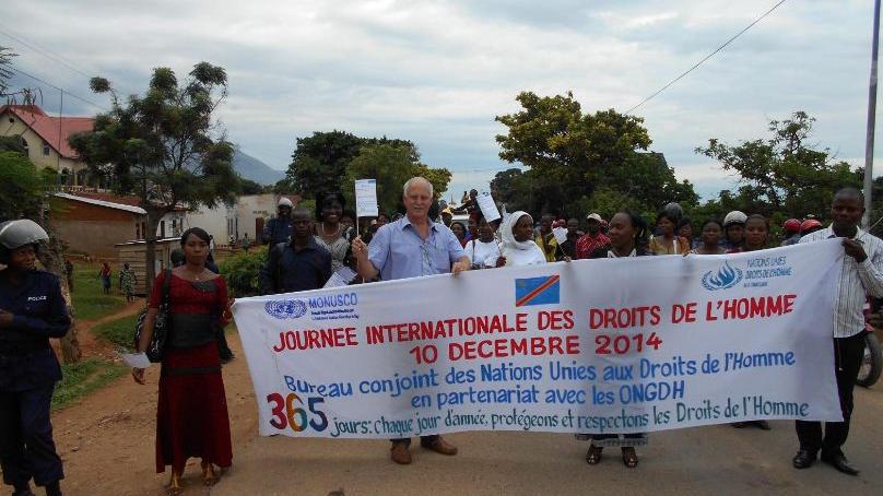 Martin Kobler, Chef de la MONUSCO, et Abdoul Aziz Thioye, Directeur par intérim du Bureau conjoint des Nations Unies aux Droits de l’Homme rendent hommage à tous les défenseurs des droits de l’Homme Kinshasa, 10 décembre 2014…