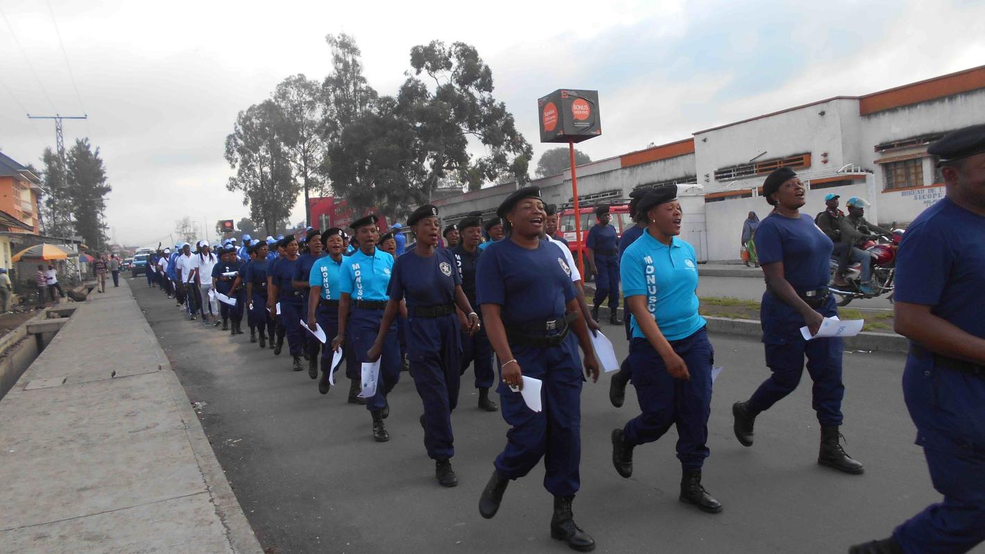 La police de la MONUSCO organise une marche pour clôturer le mois de la femme