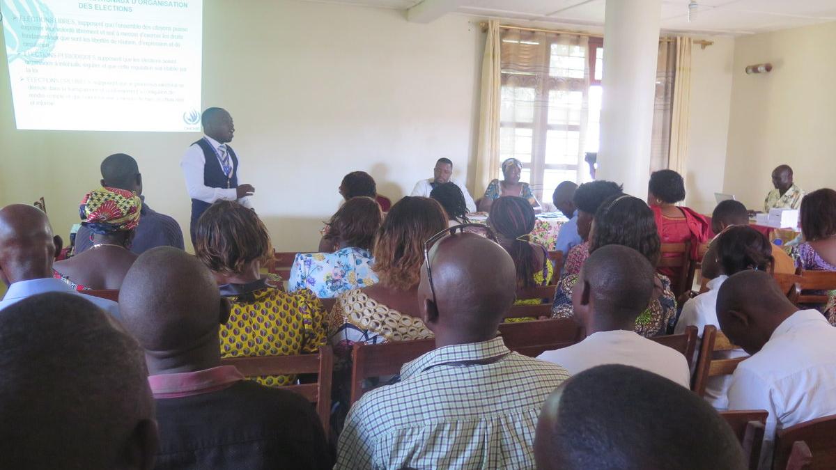 Participants à la séance de sensibilisation des personnes en situation de vulnérabilité et des groupes sociaux défavorisés, en période électorale. Photo MONUSCO/Guy KAREMA