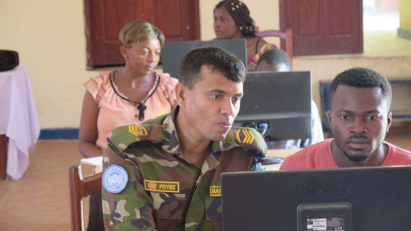 Des casques bleus forment des jeunes de Bunia en informatique. Photo MONUSCO/Guy KAREMA