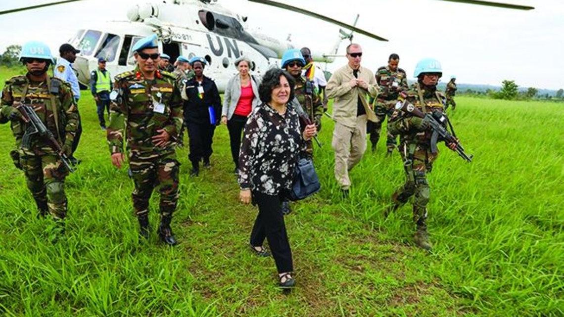 Leila Zerrougui, Représentante spéciale du Secrétaire général en République démocratique du Congo, arrive à Fataki, dans la province de l’Ituri, suite aux attaques meurtrières contre la population. 1er avril 2018. © MONUSCO/Michael Ali