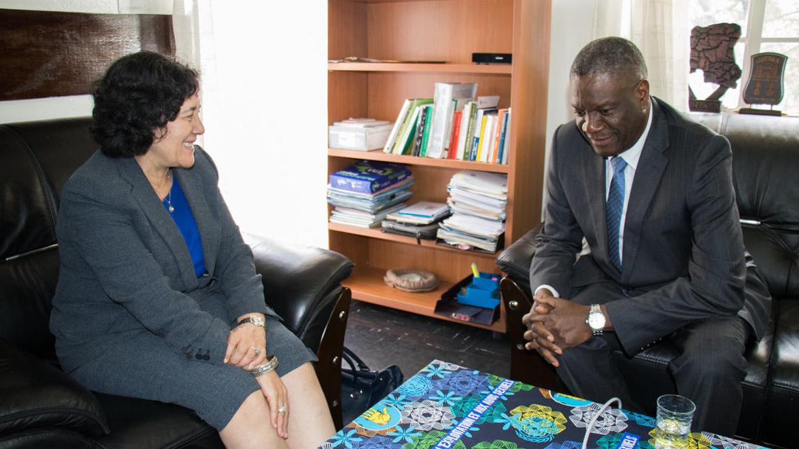 Le Dr Denis Mukwege, prix Nobel de la paix 2018, en compagnie de la cheffe de la MONUSCO, Leila Zerrougui. Photo MONUSCO/Alain LIKOTA