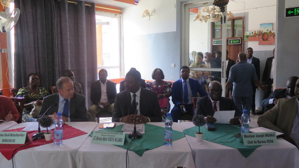 Présentation à Kananga, ce 17 septembre 2019, de l’approche NEXUS, approche conjointe des partenaires humanitaires, de développement et de paix pour le Grand Kasaï, en présence du Coordonnateur résident et coordonnateur humanitaire des Nations Unies, David McLachlan-Karr, et du gouverneur du Kasaï-Central, Martin Kabuya.