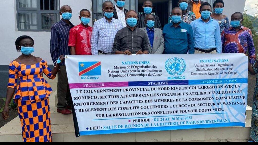 La section des Affaires civiles de la MONUSCO, en collaboration avec le gouvernement provincial du Nord-Kivu, a organisé du 24 au 26 mai 2022 à Bweremana (Nord-Kivu) un atelier sur la résolution des conflits à l'attention des chefs coutumiers. Photo MONUSCO / Denise Lukeso