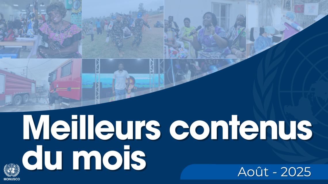 En ce mois d’Août, la MONUSCO s’est illustrée par des actions fortes et inspirantes, allant de la promotion des jeunes, acteurs du changement, à des interventions vitales pour la protection des civils. À travers articles, tweets et vidéos, découvrez comment la Mission continue de soutenir les communautés congolaises, de répondre aux urgences et de promouvoir la paix, même dans les contextes les plus difficiles.