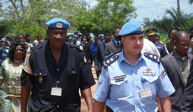 Kananga, 8 novembre 2012 – Le deuxième cycle de formation de base de 300 cadres et agents de la Police nationale congolaise (PNC), dont 53 femmes, en technique de police de proximité, a commencé ce mardi 6 novembre 2012 à Kananga, chef lieu de la province du Kasaï Occidental.