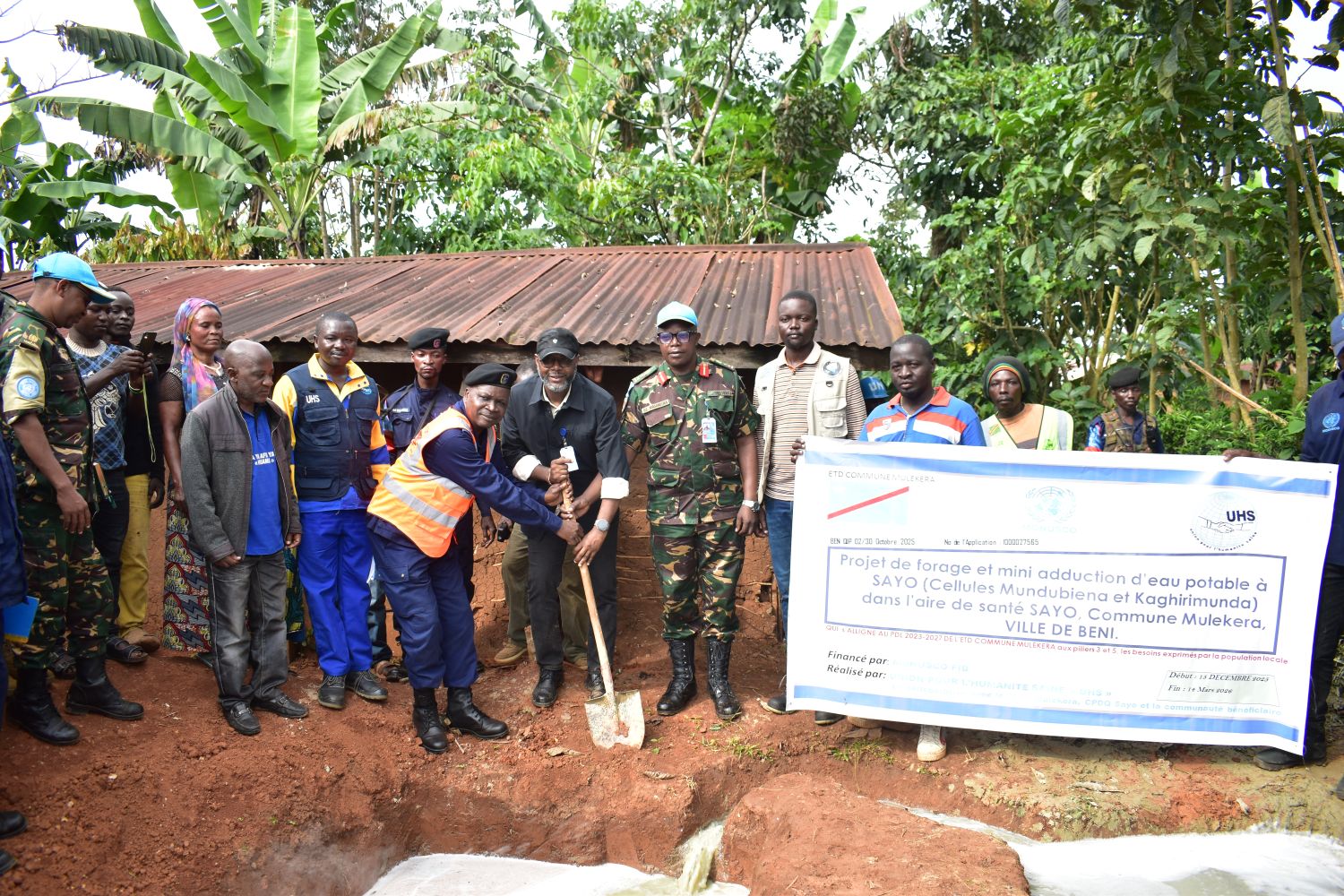 Noël est arrivé avant l’heure pour les habitants du quartier Sayo situé au Nord-Ouest de la ville de Beni, au Nord-Kivu. La Mission de l’Organisation des Nations Unies pour la Stabilisation en RDC (MONUSCO) y a lancé mercredi les travaux de construction d’un réseau d’adduction d’eau potable.
