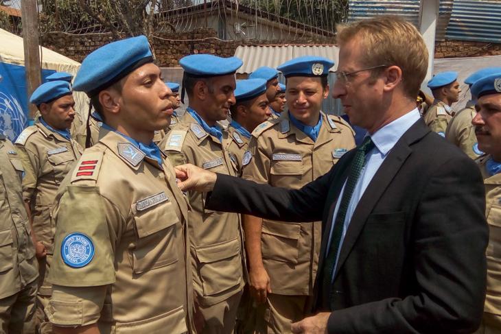 Bukavu, le 7 septembre 2016 – Il s’est tenu à Bukavu le mercredi 7 septembre 2016 la cérémonie de remise des médailles de l’ONU à 140 éléments de l’Unité égyptienne de la Police Formée (EGYFPU) et dix officiers de la Police…
