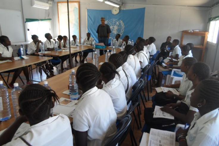 Uvira, le 22 avril 2015 - Matinée didactique ce mercredi 22 avril 2015 pour 41 élèves filles et pré-finalistes (5ème année du secondaire) du Lycée Umoja d'Uvira au Sud-Kivu au Quartier général de la Mission des Nations Unies…