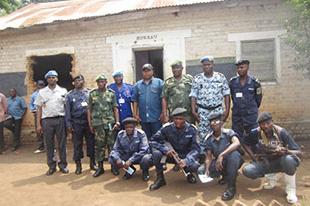 Dungu, 3 février 2014 - La Police de la Mission de l’ONU pour la Stabilisation en République démocratique du Congo (MONUSCO), en compagnie de l’administrateur du territoire de Dungu et de plusieurs officiers de la Police…