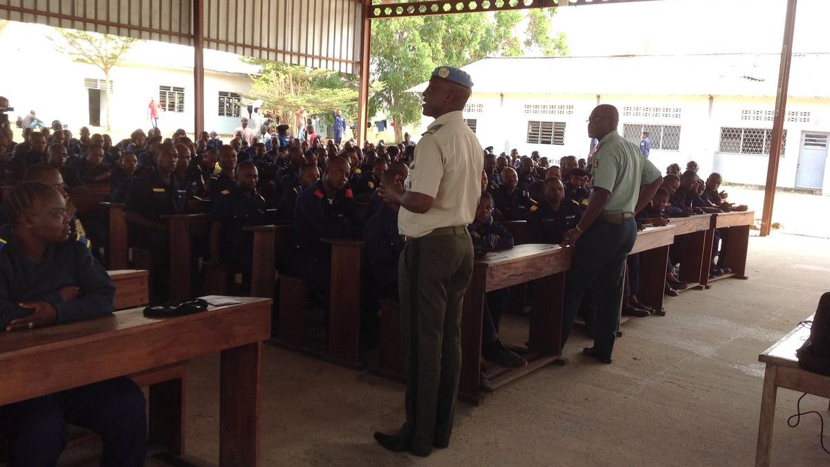 Dans le cadre de ses activités de renforcement des capacités de la Police nationale congolaise, PNC, une équipe de la coordination de la formation composée d’Unpols, Garba SALMA et Samba Karim TIMBO, a animé le 27 Septembre 2017 à l’école de police de Kasangulu, une sensibilisation sur les Violences Sexuelles Basées sur le Genre , SVGB et VIH/SIDA au profit des 300 Policiers en fin de formation.