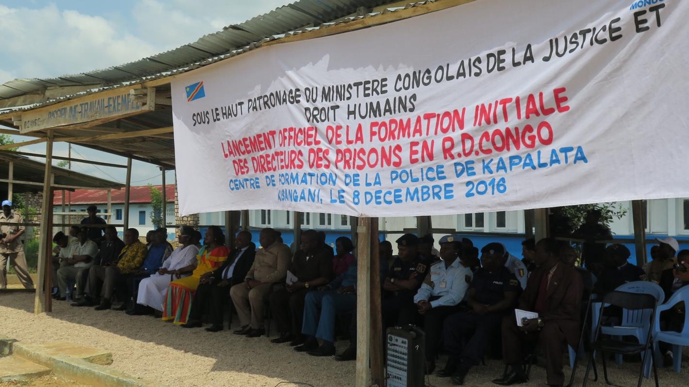 Kisangani, le 08 décembre 2016 – Le Ministère congolais de la Justice et des Droits humains, grâce au soutien technique et financier de la MONUSCO, à travers sa Section Justice et Administration pénitentiaire, a lancé officiellement, ce jeudi, au centre de formation de la police à Kapalata, un programme de formation spéciale initiale des cadres de l’administration pénitentiaire de la RDC dans le domaine de la gestion des établissements pénitentiaires. Cette session de formation s’inscrit dans le cadre de la réforme de la justice et de l’administration pénitentiaire, d’une part, et de la réhabilitation des prisons, et le renforcement des capacités du personnel pénitentiaire d’autre part.