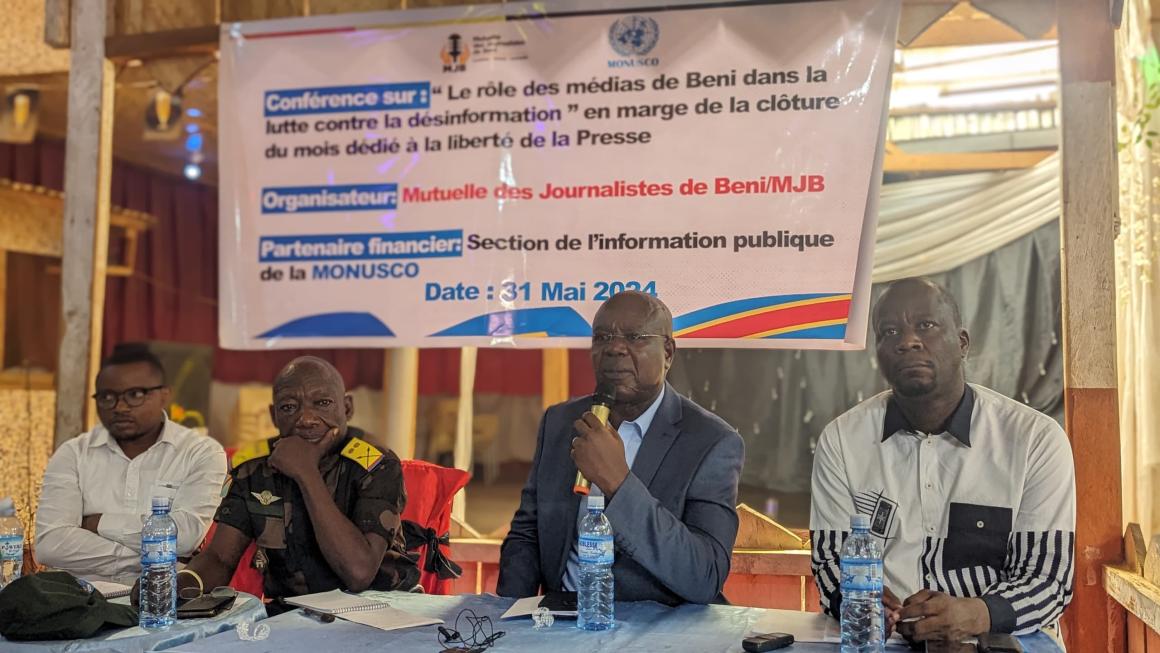 C'est autour du thème de leur rôle dans la lutte contre la désinformation que les professionnels de médias de Beni, réunis sous la bannière de la Mutuelle des journalistes de Beni (MJB), ont planché ce vendredi 31 mai à l'Espace Sheraton de cette ville du Nord-Kivu. Pour ce faire, quatre-vingt-cinq professionnels de la plume, dont 16 femmes, ont échangé avec la MONUSCO et les FARDC, deux partenaires qui subissent régulièrement ce phénomène dont les conséquences impactent négativement aussi bien la lutte contre les groupes armés que la cohésion sociale.