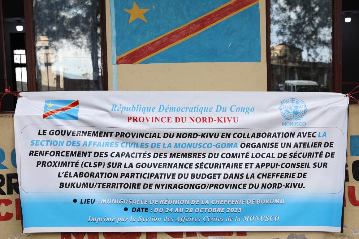 Au Nord-Kivu, plusieurs localités sont en proie à l’insécurité causée par l’activisme des groupes armés avec, comme conséquence, des déplacements massifs de population. Dans ce cadre, la Mission a organisé cette formation à l’intention des acteurs du comité local de sécurité de proximité en y associant la thématique de la gouvernance de la sécurité et l'appui au conseil de l’élaboration du budget du territoire de Nyiragongo et la chefferie de Bukumu.