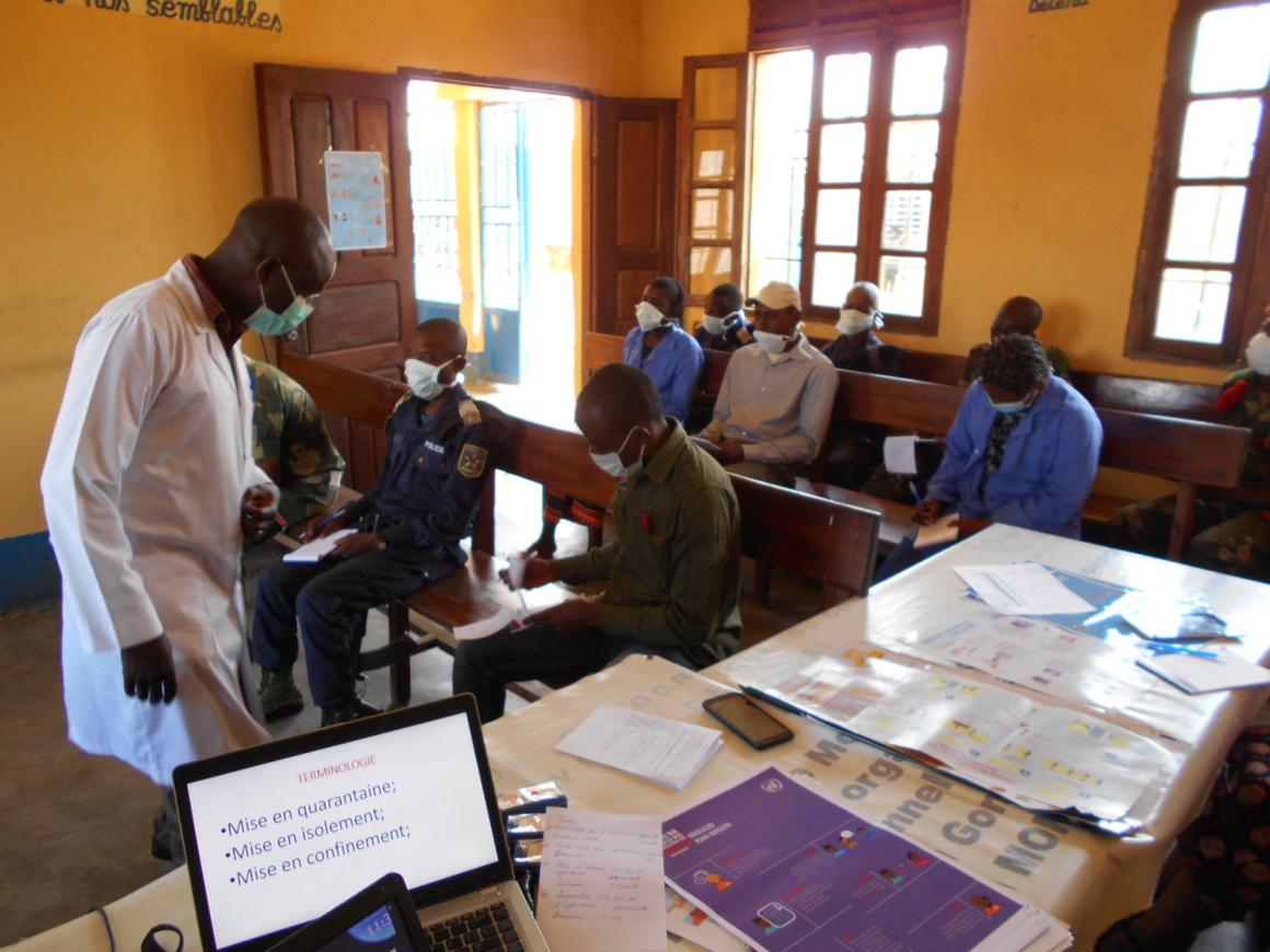Cette formation avait deux volets : une partie théorique dans laquelle les directives des autorités congolaises (Ministre de la Justice notamment) sur les « mesures de lutte contre le Covid-19 dans les prisons » ont été passées en revue ; et une partie pratique dispensée par les deux médecins de cet établissement carcéral et au cours de laquelle les détenus et le personnel ont été sensibilisés sur les symptômes, les modes de transmission et les comportements à adopter en cas de contamination.