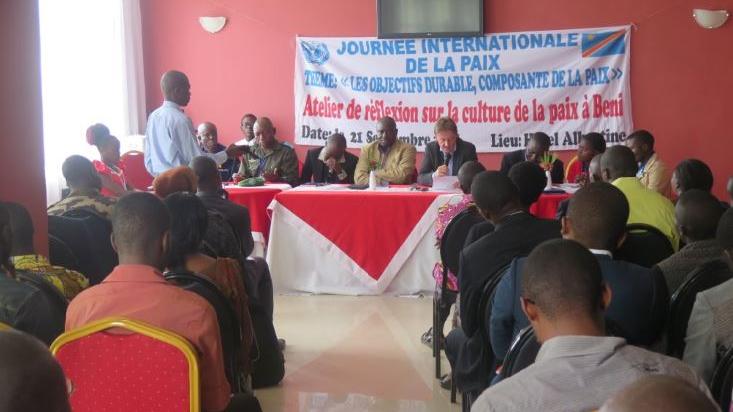 A l’initiative de la MONUSCO-BENI et en partenariat avec une ONG locale dénommée « Action pour la Paix en Afrique » (APA), la Journée Internationale de la Paix a été célébrée hier mercredi 21 septembre 2016 à Beni en présence du maire de la ville, qui a officiellement ouvert la cérémonie, du chef de bureau de la MONUSCO, Warner TEN Kate, de quelques membres du Comité local de sécurité des membres de la société civile (jeunes, femmes, religieux), de quelques agents de la MONUSCO et de la Presse…