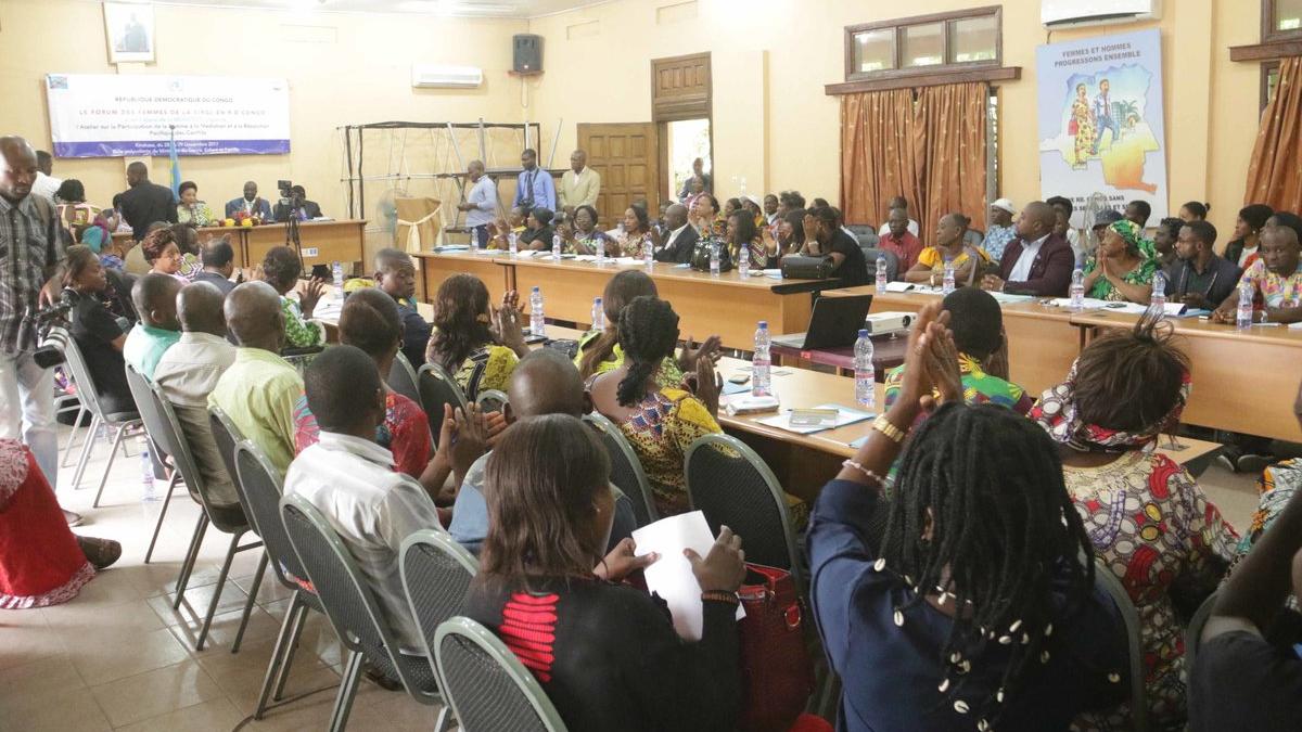Le Forum national des femmes de la Conférence internationale sur la région des Grands Lacs (CIRGL) appuyé par la MONUSCO, a organisé du 28 au 29 décembre 2017 dans la Salle polyvalente Marie-Ange Lukiana du Ministère du Genre, Enfant et Famille, un atelier sur la médiation et la résolution des conflits au profit d’environ 60 femmes appartenant aux différentes organisations de la Société civile, les plateformes des femmes, les activistes de droits de femmes ainsi que des expertes sur les questions de la promotion de la paix, du dialogue, de la réconciliation, la tolérance et la médiation des conflits.
