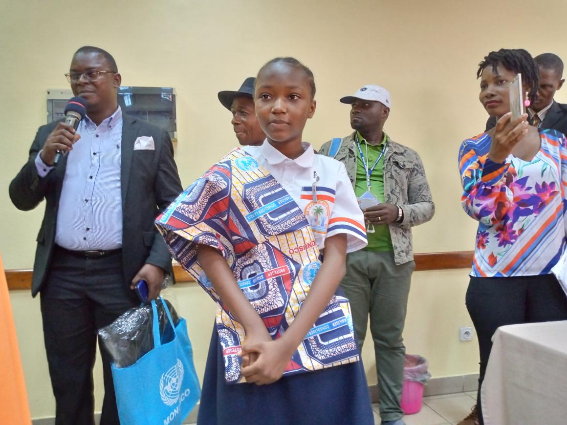 ‘‘Ce prix est d’une très grande importance pour moi. C’est une très grande joie pourmoi, c’est aussi la joie de mes parents et de tous mes enseignants’’, déclareProvidence Kailu Diakese, 11 ans, la plus jeune lauréate du concours d'orthographe organisé par la MONUSCO et l’Association congolaise des femmes journalistes de la presse écrite (ACOFEPE) sous le thème: “Ecriture sans faute’’.