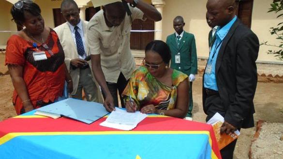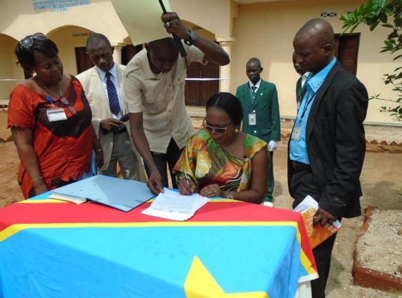 La cérémonie officielle de remise des clés a été présidée par le Vice-gouverneur de province, Pascal Mombi Opana en présence de Madame Assetou Sanogo, chef de Bureau de la MONUSCO-Kisangani et de la Ministre provinciale du Genre, Madame Jeanne Alashi.