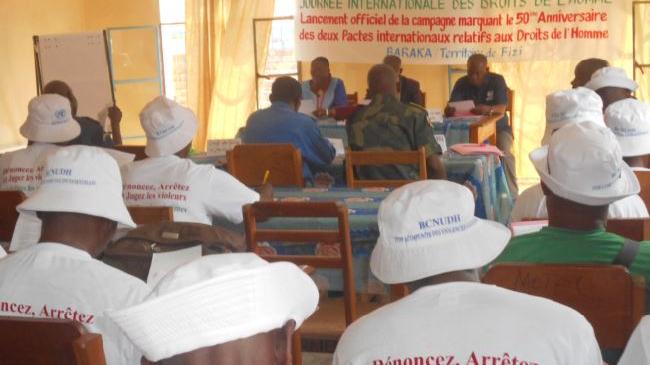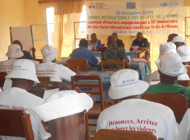 Uvira, le 14 décembre 2015 – Le Bureau Conjoint des Nations Unies aux Droits de l’Homme (BCNUDH) de la Monusco-Uvira a choisi cette année Baraka en Territoire de Fizi au Sud-Kivu, pour célébrer la Journée internationale des Droits de l’homme 2015. Ce choix était tout sauf un hasard : en dix ans d’existence du Bureau Conjoint des Nations Unies aux Droits de l’Homme, c’était la première fois que cette activité se déroulait dans cette localité située à une centaine de kilomètres d’Uvira. Outre les manifestations classiques (différentes allocutions, danses, etc.), cette activité a d’abord permis au BCNUDH de procéder à une évaluation de la situation des droits de l’homme dans cette partie du territoire congolais.