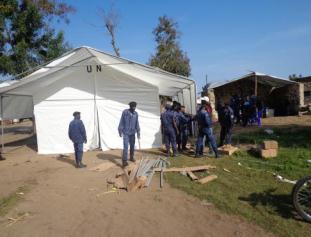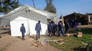 Goma, 30 novembre 2013 – Dans le cadre de l’appui de la Mission de l’ONU pour la Stabilisation en République démocratique du Congo (MONUSCO) au redéploiement d’unités de la Police nationale congolaise (PNC) à Nyiragongo et à Rutshuru, deux territoires de la province du Nord Kivu récemment libérés des mains des rebelles du M23, la Police MONUSCO y a procédé, les 26 et 27 novembre 2013, à l’installation de tentes et à la distribution de rations alimentaires.