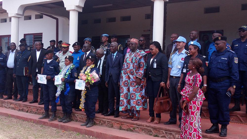 BUNIA, 11 Mars 2017 : La cérémonie de fin de formation au profit de quarante (40) cadres et agents PNC en Police de Proximité, s’est déroulée à l’école de Police de BUNIA, sous la présidence du vice-Gouverneur de la Province de l’ITURI, en présence du commandant de l’Ecole de Police de BUNIA, du Commissaire Provincial de la garnison de L’ITURI, du Directeur General des Ecoles et formations de la PNC (DGEF) représentant le Directeur Général de la Police Nationale Congolaise, du Chef du bureau MONUSCO de la Province de l’ITURI et d’une représentante du PNUD.