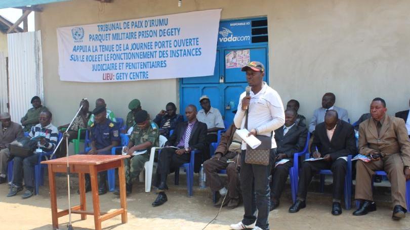 Bunia, 11juilet 2016 : Du 07 au 08 juillet 2016, la section d’Appui à la Justice de la MONUSCO a organisé à Gety, Ituri une journée portes ouvertes sur le rôle et le fonctionnement des instances judiciaires et pénitentiaires. Objectif : vulgariser, auprès de la communauté, le rôle et le fonctionnement des instances judiciaires et pénitentiaires, nouvellement installés dans le territoire d’Irumu.