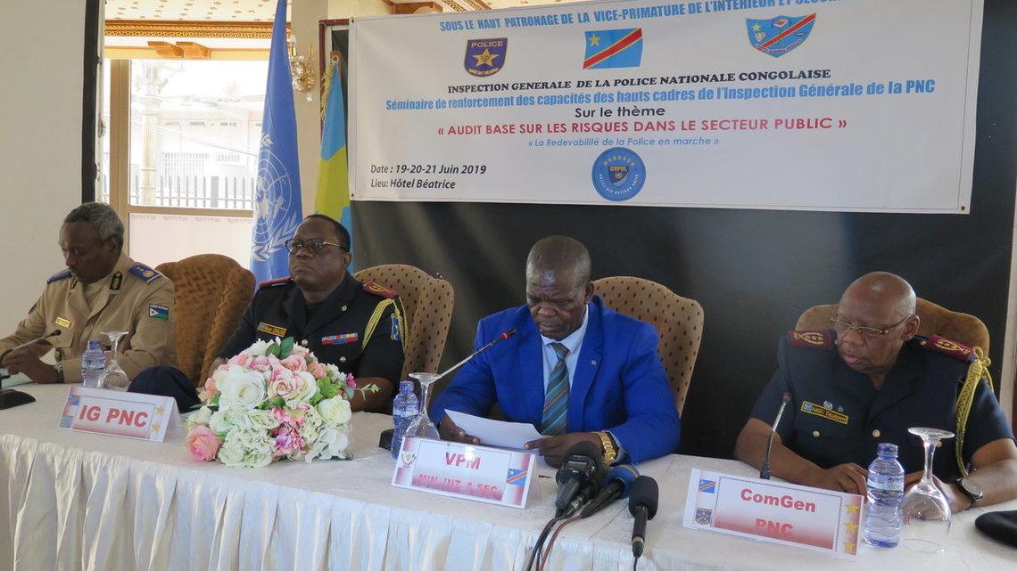 « Depuis 2006, la République Démocratique du Congo s’est inscrite dans la logique de l’instauration d’un Etat de droit, respectueux de la Constitution, des valeurs démocratiques et de ses engagements internationaux ». C’est ce qu’a affirmé le Secrétaire Général du ministère de l’Intérieur, représentant Monsieur le Vice- Premier Ministre en charge de l’Intérieur et Sécurité, à l’occasion de l’ouverture du séminaire dont le thème portait sur « l’audit basé sur les risques dans le secteur public », tenu ce mercredi 19 juin 2019.