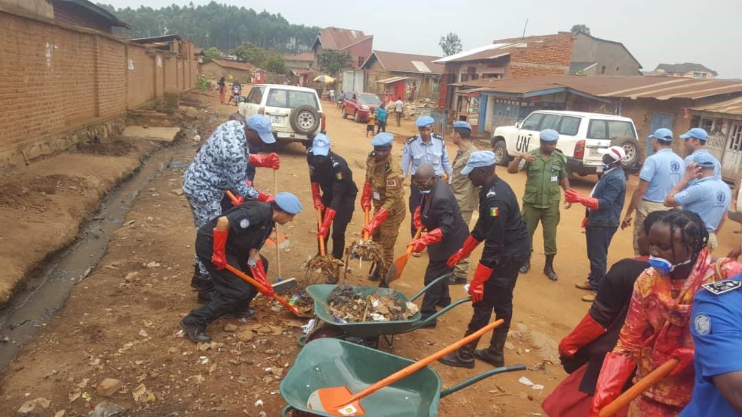 A Butembo, dans le Nord-Kivu, la Police MONUSCO a réalisé, les 21 et 22 juin 2019, un projet dénommé «Butembo Ville propre», afin de sensibiliser la population dans la lutte contre la maladie à virus Ebola.
