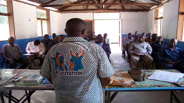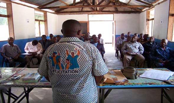 Manono (Nord-Katanga), le 15 Mai 2015, Une équipe de fonctionnaires la MONUSCO-Kalemie a animé une séance de sensibilisation sur la Résolution 2211 du Conseil de Sécurité et le rôle de la Mission en RDC, au profit des responsables des confessions religieuses de la cité de Manono.