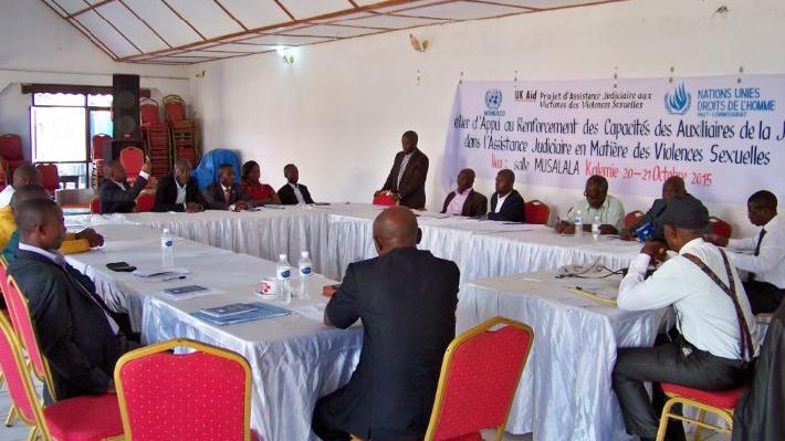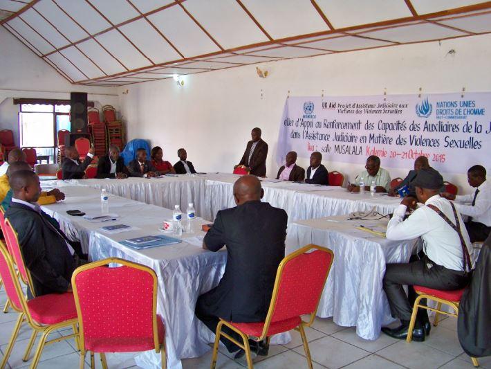 Kalemie - 21 Octobre 2015. Le Bureau Conjoint des Nations Unies aux Droit de l’Homme, BCNUDH, en collaboration avec le fonds UK Aid, a organisé les 20 au 21 octobre à Kalemie, un atelier de formation à l’endroit de 20 avocats et défenseurs judiciaires, dont une seule femme