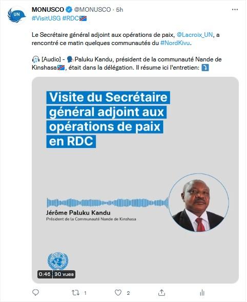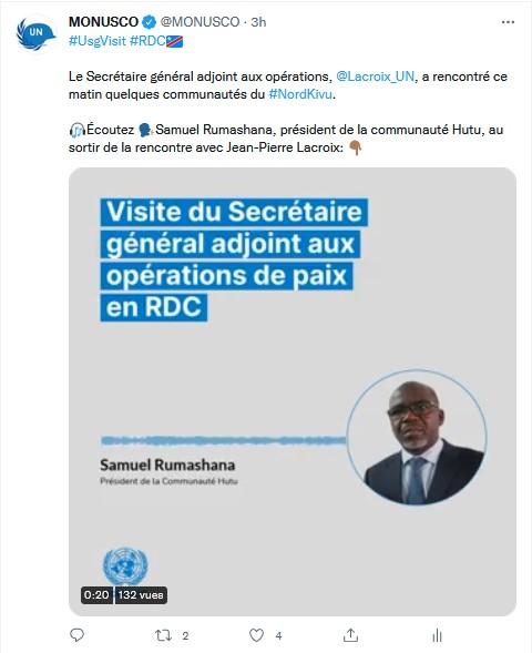 C’est ce qu’a affirmé pour sa part Samuel Rumashana, président de la communauté Hutu, après sa rencontre avec Jean-Pierre Lacroix.