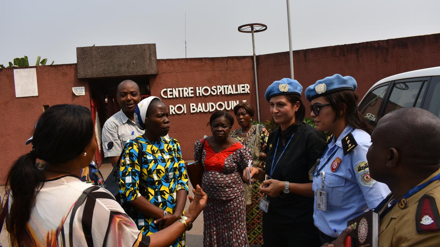 Kinshasa, le 27 Juillet 2017: le Comité du Réseau des femmes de la Police de la MONUSCO, accompagné par le personnel féminin de la PNC, s’est rendu au chevet des femmes hospitalisées au centre de santé ROI BEAUDOUIN dans la Commune de Masina pour interceder auprès des autorités de l’hôpital afin de libérer cinq (05) femmes qui ont accouché et qui sont retenues pour défaut de payement des frais d’opération et de traitement.