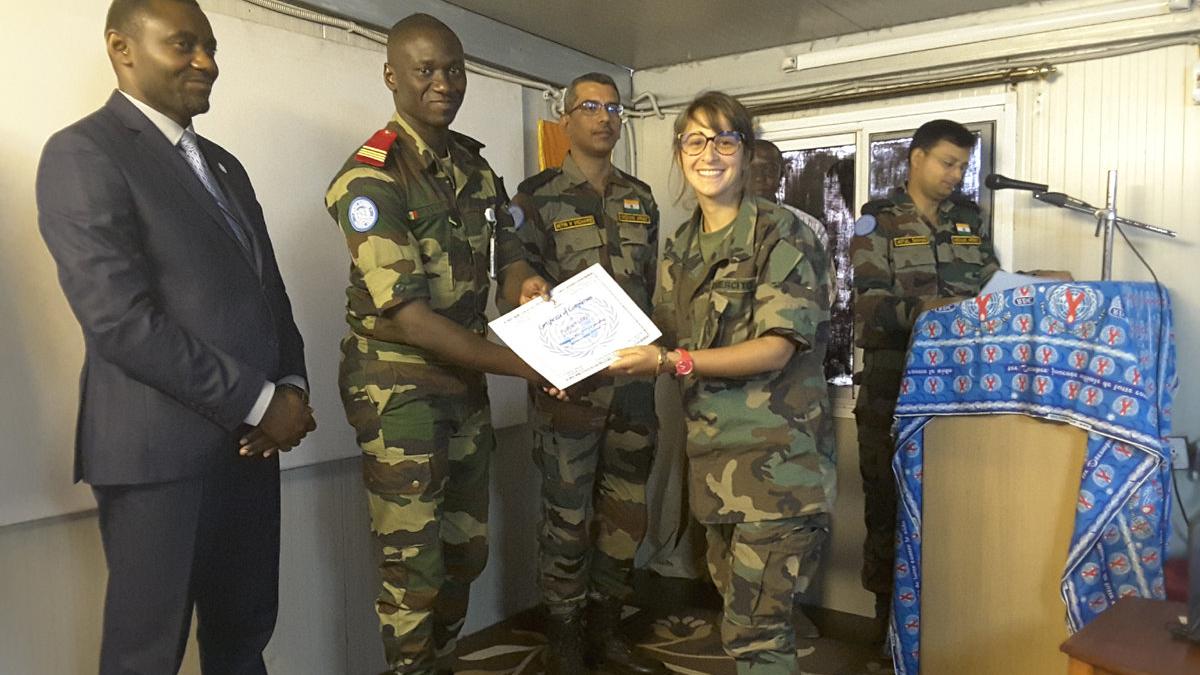 Remise de brevet aux casques bleus après une formation dans le cadre de la lutte contre le VIH. Photo MONUSCO/Joseph Tabung Banah