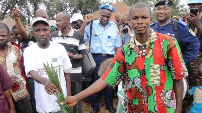 Kabéké, Territoire de Manono – Province du Tanganyika) 24 mars 2016 - Sous la supervision de la Cheffe de bureau de la MONUSCO- Kalemie et en partenariat avec les autorités locales, sécuritaires et la Société civile, le processus d’installation des commissions mixtes paritaires de réconciliation se poursuit dans le territoire de Manono pour mettre un terme au conflit intercommunautaire Pygmée/Bantous.