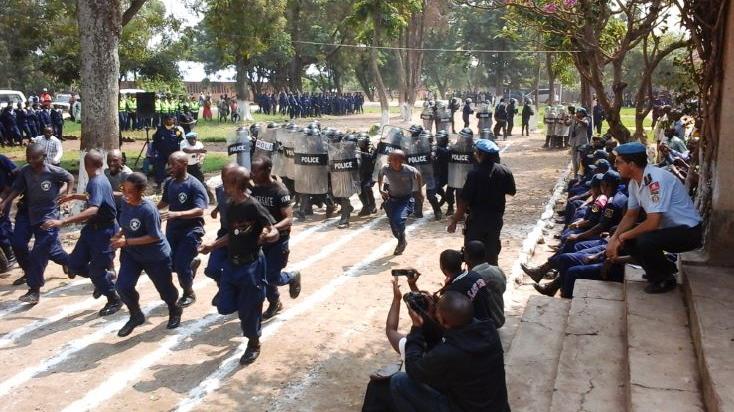 Rutshuru, le 27 juin 2015 - La formation de base accélérée de 400 agents de la Police Nationale Congolaise du Nord-Kivu initiée par la composante de la Police MONUSCO a été clôturée le 27 juin 2015 par une cérémonie officielle organisée à l’esplanade de l’Administration du territoire de RUTSHURU, sous la présidence du Général AWACHANGO Vital, Commissaire Provincial de la Police Nationale Congolaise, Représentant le Gouverneur de la Province du Nord-Kivu, empêché.