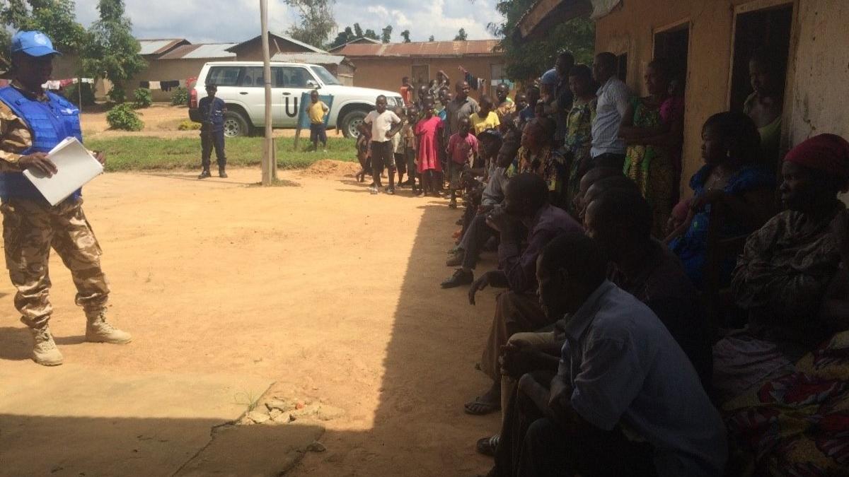 A Oicha, la Police de MONUSCO fait connaitre les numéros verts pour alerter la Police Nationale Congolaise. Photo MONUSCO/Anne Herrmann
