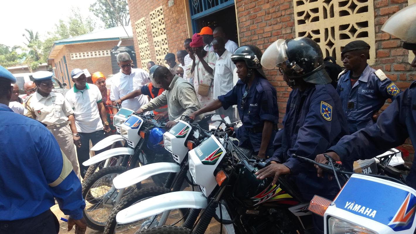 « Uvira, le 22 octobre 2014 » - Ould Mohamed El Hacen, Chef du Sous-bureau de la Monusco-Uvira, a remis ce samedi matin six motos de marque Yamaha DT au District urbain de la Police nationale congolaise (PNC) d’Uvira. La valeur totale de ce don de la Mission des Nations Unies pour la Stabilisation en RDC est de 24 000 dollars américains. Cet appui de la Monusco rentre dans le cadre de la protection des civils et de la lutte contre l’insécurité à Uvira. Plus globalement, il vient renforcer la « Stratégie Opérationnelle de Lutte contre l’Insécurité à Uvira» connue sous l’acronyme de SOLIUV. Il s’agit d’un projet pilote de Police de proximité expérimentée par la Monusco dans certaines Villes de la RDC etdestinée à rapprocher davantage la Police de la population pour une meilleure sécurisation des biens et des personnes.