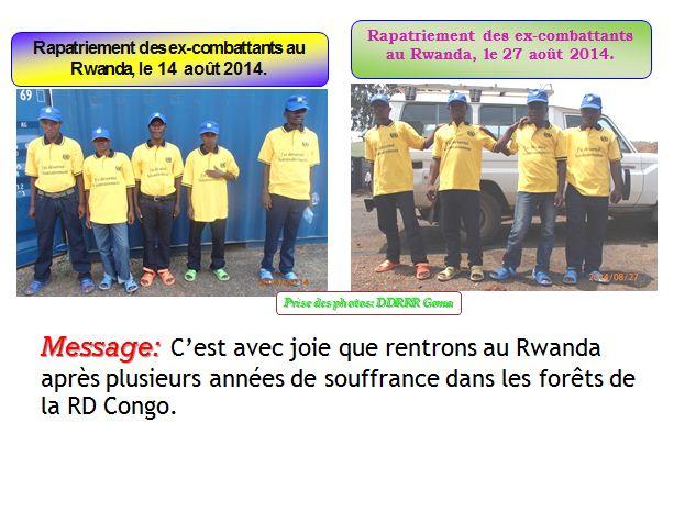 Message: C’est avec joie que rentrons au Rwanda après plusieurs années de souffrance dans les forêts de la RD Congo.