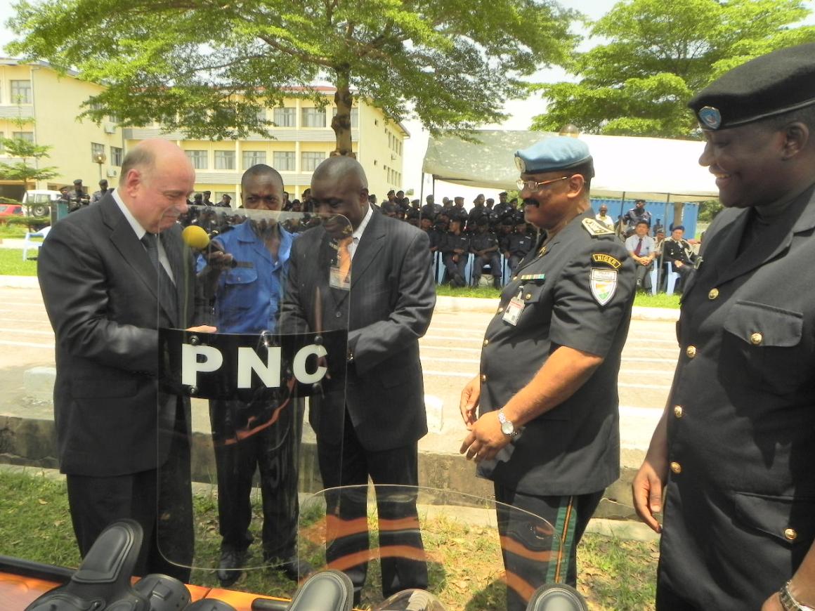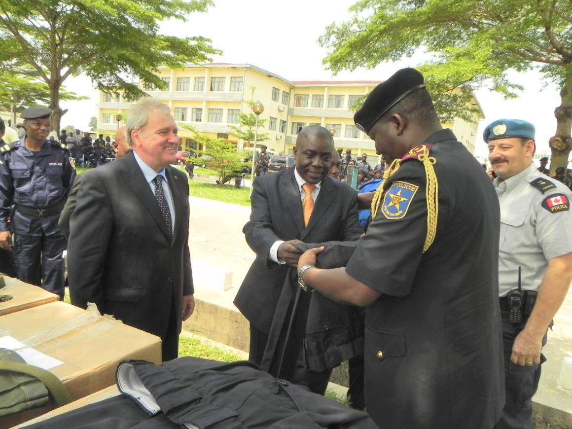 Il y a lieu de signaler que, suite à l’appel du Commissaire de la Police de la MONUSCO à la communauté internationale lors de la cérémonie de lancement de la formation, d’autres partenaires internationaux de la RDC ont également apporté des appuis divers, en vue du renforcement du professionnalisme et des capacités opérationnelles de la PNC. Il s’agit, entre autres, des Etats Unis d’Amérique qui ont répondu favorablement par la remise d’équipements le 15 novembre 2011. Il en est de même, de la Police royale du Canada, qui a apporté une contribution par l’octroi de tenues individuelles de protection, dont la remise a été faite à l’occasion de cette cérémonie par l’Ambassadeur du Canada.