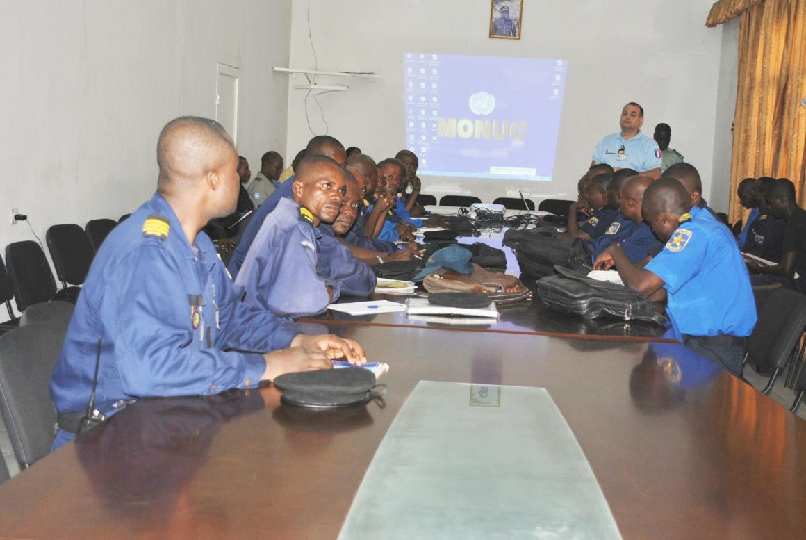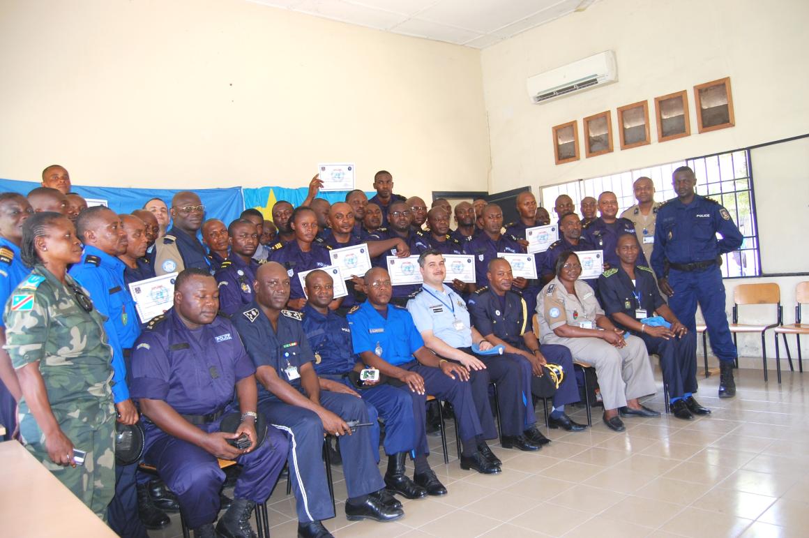 Concomitamment à l’exécution de la phase 1 consacrée à la réhabilitation du Centre d’Instruction de Kasangulu, la mise en œuvre de la phase 2 s’effectuait par la formation de vingt cinq (25) formateurs et de cent un (101) cadres de commandement des unités d’intervention de la PNC. Ces deux groupes ont été formés respectivement aux méthodes pédagogiques, aux techniques de maintien et de rétablissement de l’ordre et au commandement, à la législation en maintien de l’ordre, aux Droits de l’Homme et au management.