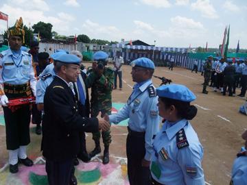 Dans son discours, le Général Pascal Champion a loué « le dévouement et le professionnalisme avec lequel les membres de la neuvième Unité de Police Indienne, déployé depuis Octobre 2014, ont rempli leurs missions au service des Nations Unies, de la protection de la population, et de la stabilisation ».