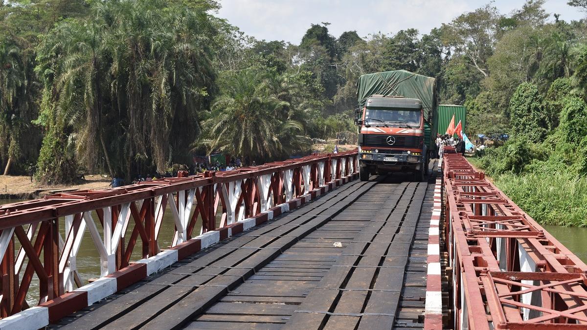 Béni – 23 janvier 2017 : Le Ministre des Infrastructures et des Travaux Publics, le Gouverneur de Nord-Kivu et le Directeur du Bureau de la MONUSCO Béni-Butembo-Lubéro ont procédé à la réouverture du pont Semuliki. Plus de 200 camions attendaient la réouverture de ce pont passage obligé des camions reliant par route la frontière de l’Ouganda vers Béni et Butembo, centre économique de la région.