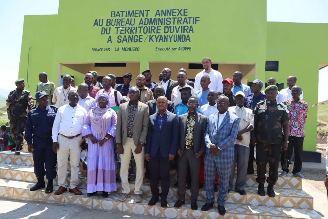 « Aujourd’hui, nous pouvons dire que nous nous allons vers le désengagement de la MONUSCO, mais il y a des fruits palpables », déclarait le 13 mars 2024 le gouverneur par intérim de la province du Sud-Kivu, Marc Malago Kashekere, lors de l’inauguration du nouveau bâtiment administratif financé à hauteur de 50 000 USD, par la MONUSCO à Sange, dans le territoire d'Uvira, province du Sud-Kivu.