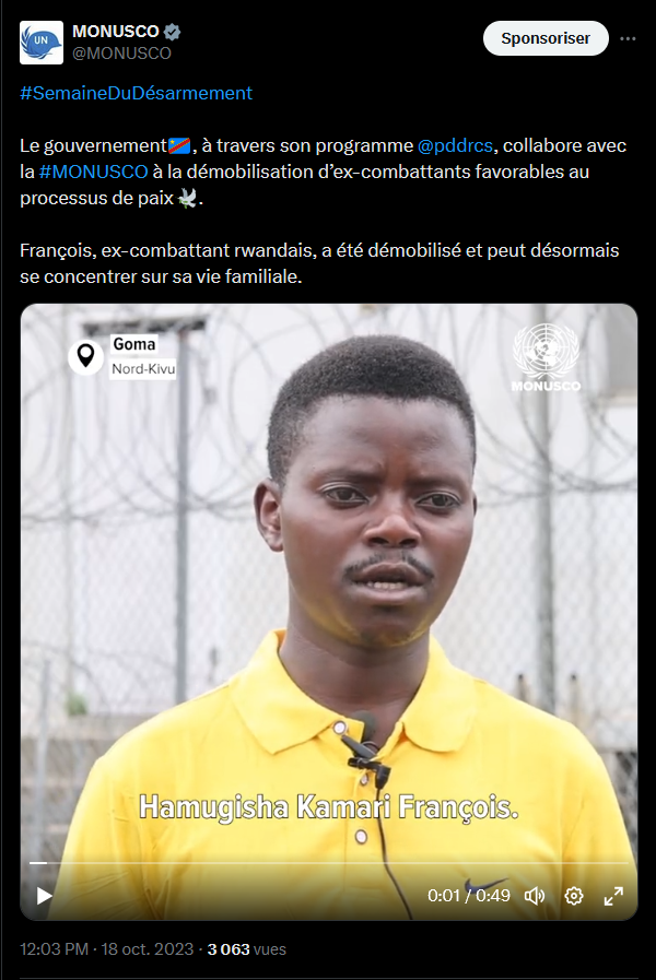 La MONUSCO soutient également le désarmement et le rapatriement des combattants étrangers présents sur le sol congolais. Entre 2018 et 2023, plus de 800 ex-combattants rwandais ont été rapatriés dans leur pays. Vedaste en fait partie. Il a vécu 30 ans en RDC, avant son retour.