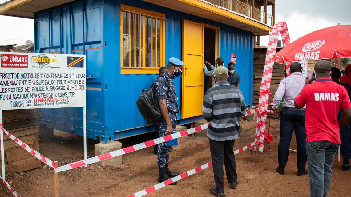 Avec la facilitation de la Police de la MONUSCO Sud-Kivu, le Service de Lutte Anti-mines des Nations Unies (UNMAS) a doté le Commissariat provincial de la Police Nationale Congolaise des containers aménagés en postes de police de proximité à Bukavu. Les ouvrages ont été remis ce vendredi 26 juin 2020 par le Chef de Bureau de la MONUSCO Karna Soro.