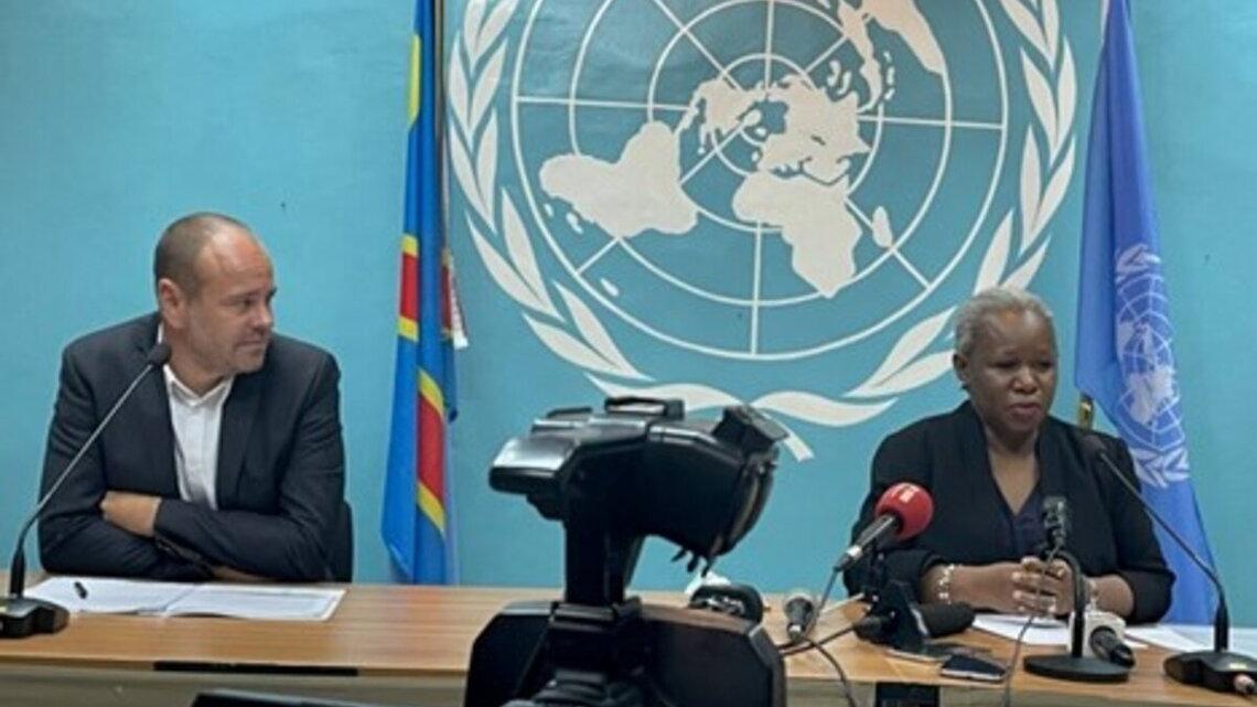 La Représentante spéciale et cheffe de la MONUSCO, Mme Bintou Keita lors de sa conférence de presse ce jeudi 3 juin à Kinshasa. Photo MONUSCO