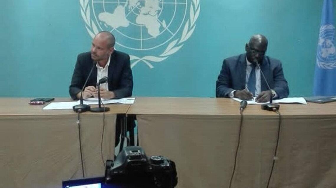 Le porte-parole de la MONUSCO, Mathias Gillman et le chargé du bureau de l'OMS en RDC, Dr Amédée Prosper Djiguimde. Photo MONUSCO