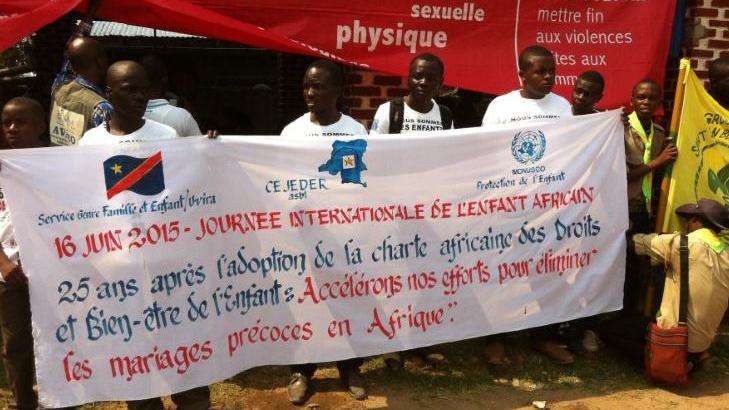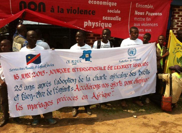 Uvira, le 16 juin 2015 – Plusieurs activités ont marqué cette Journée dont le thème pour cette année était : «25 ans après l’adoption de la Charte africaine des droits et bien-être de l’Enfant : accélérons nos efforts pour éliminer les mariages des enfants en Afrique ». La Journée a commencé très tôt par un match dit de « fraternité entre enfants » au Stade de l’Unité de la Cité.